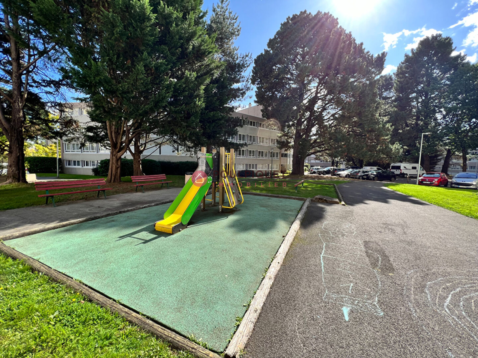 Deux stationnements libres dans la résidence, des locaux à vélos et divers.