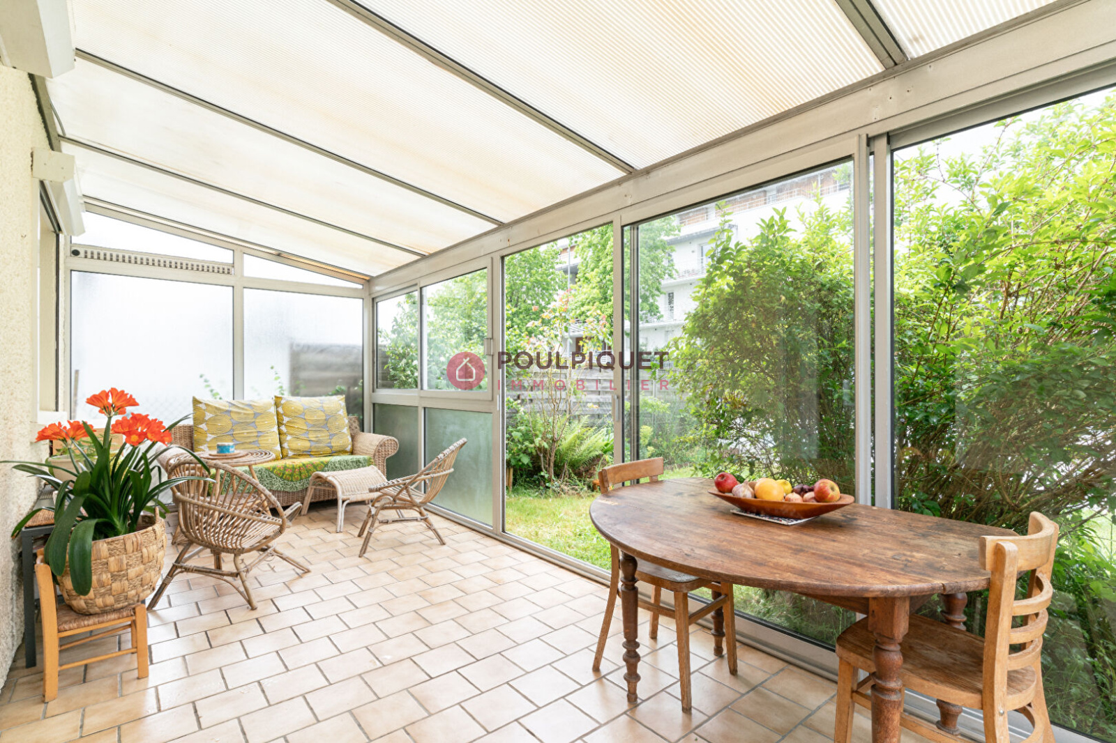 Doulon / Ste Luce / Mitrie, au sein d'un petit lotissement, maison de 5 pièces et 87 m², ajoutée d'une véranda de 15 m² et comprenant au rez-de-chaussée: un espace ouvert composé d'une entrée desservant à la suite une grande pièce de vie en double orientation. Celle-ci regroupe un espace salon, une salle à manger et une cuisine récente aménagée-équipée. Un petit dégagement abrite des rangements et les WC. Accès directe à la véranda et au jardin.
