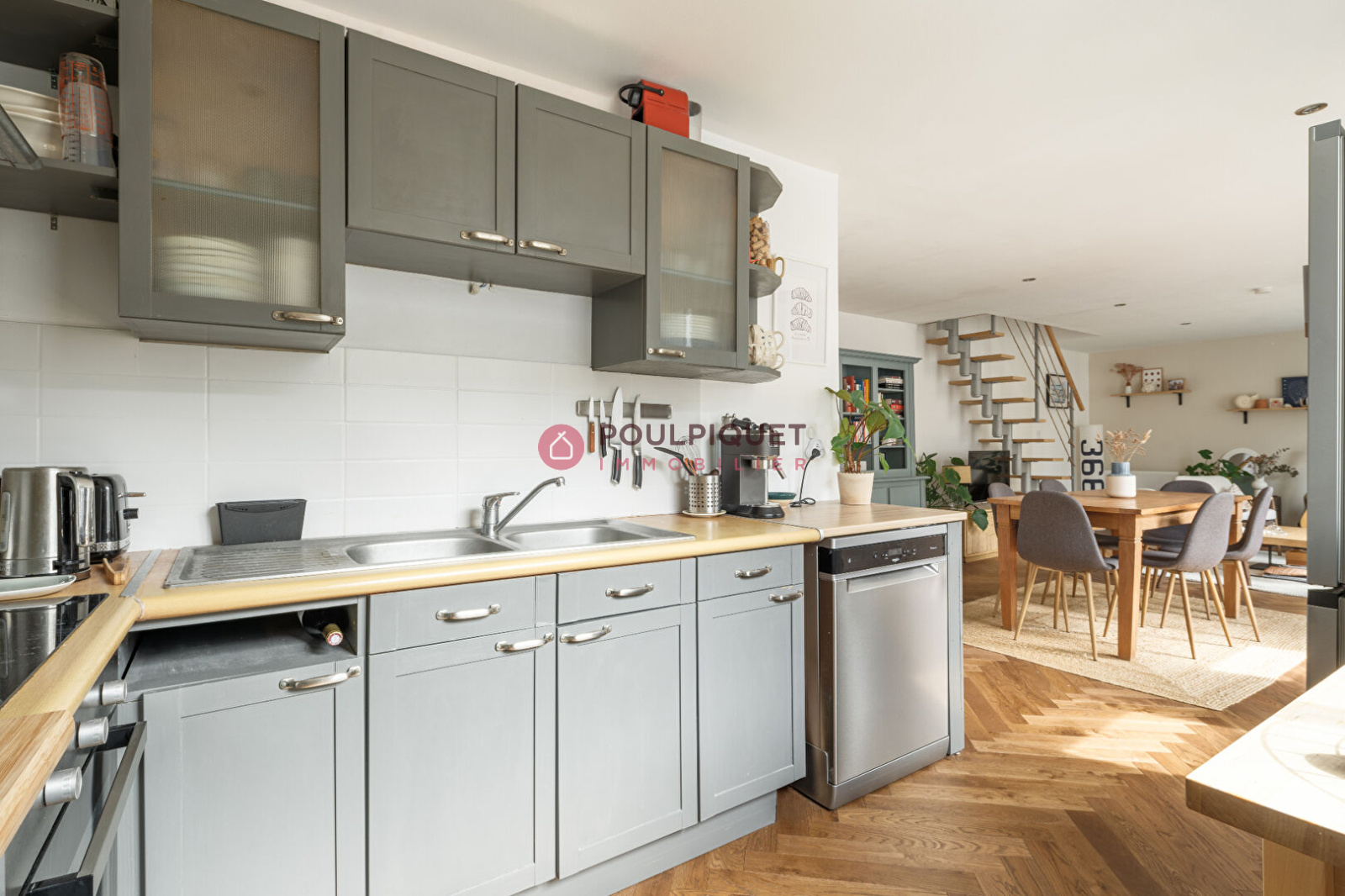 Un vaste espace de vie très lumineux, sur parquet chêne avec cuisine ouverte,