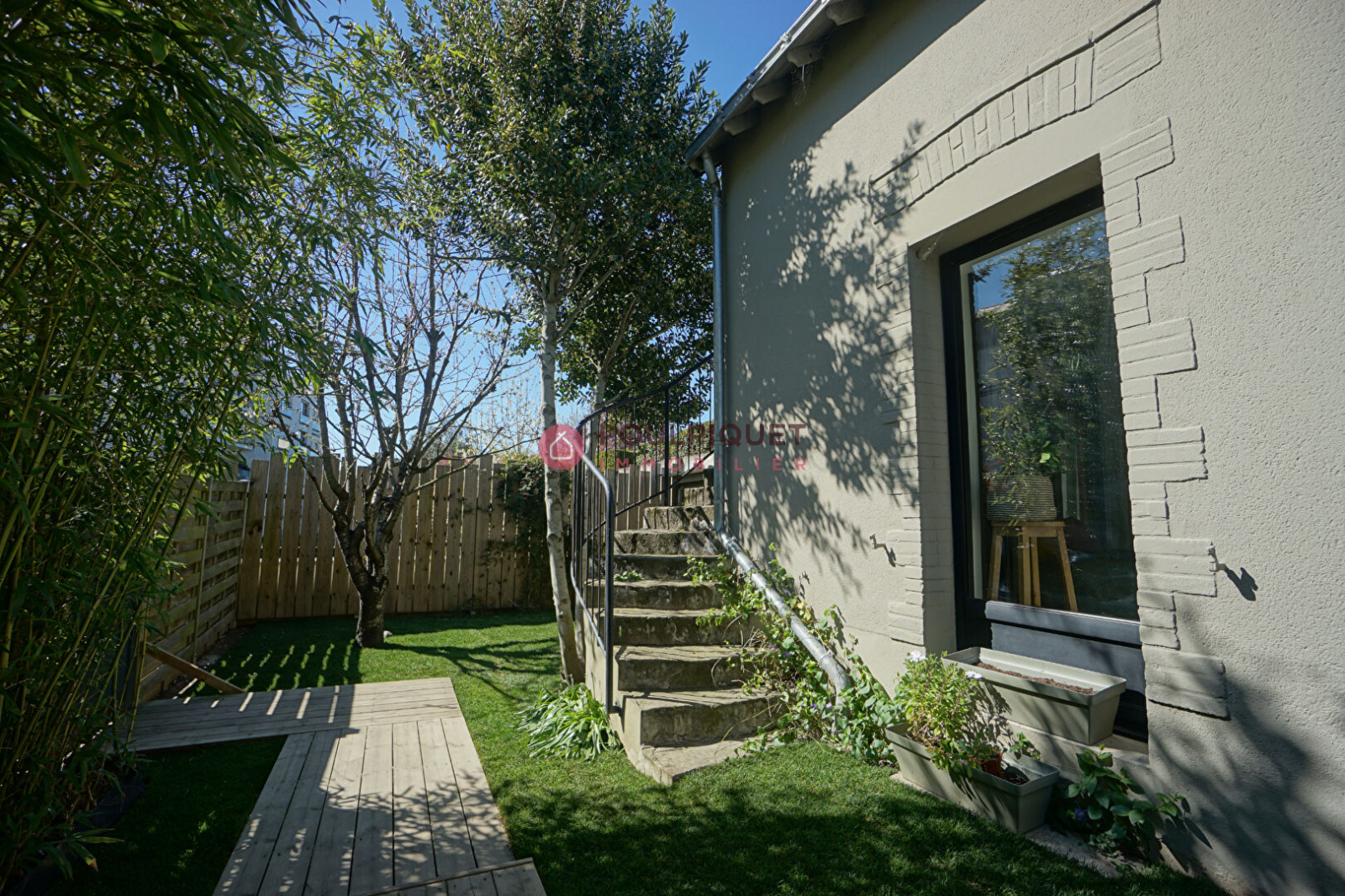 Pour la partie extérieure, un beau jardin sans vis à vis avec une pelouse naturelle en rouleau fraichement arrivée, une grande terrasse pour les déjeuners et un cabanon de jardin pour ranger les outils ou les vélos, vous permettront de prendre le soleil en oubliant que vous êtes en ville !