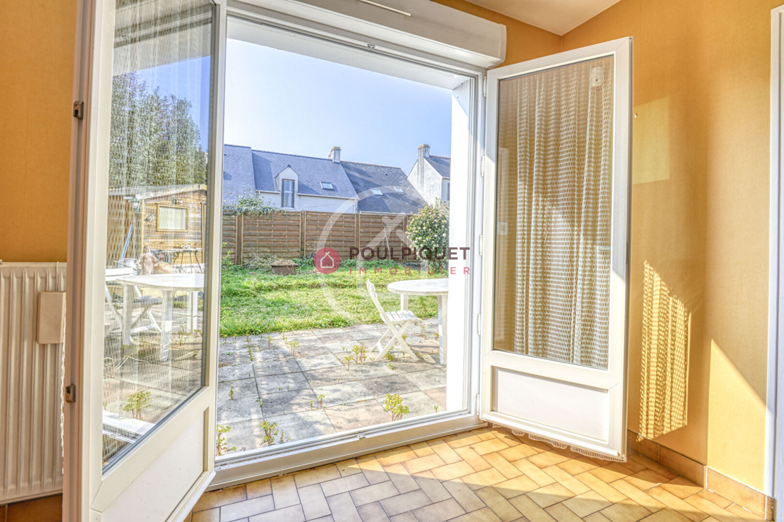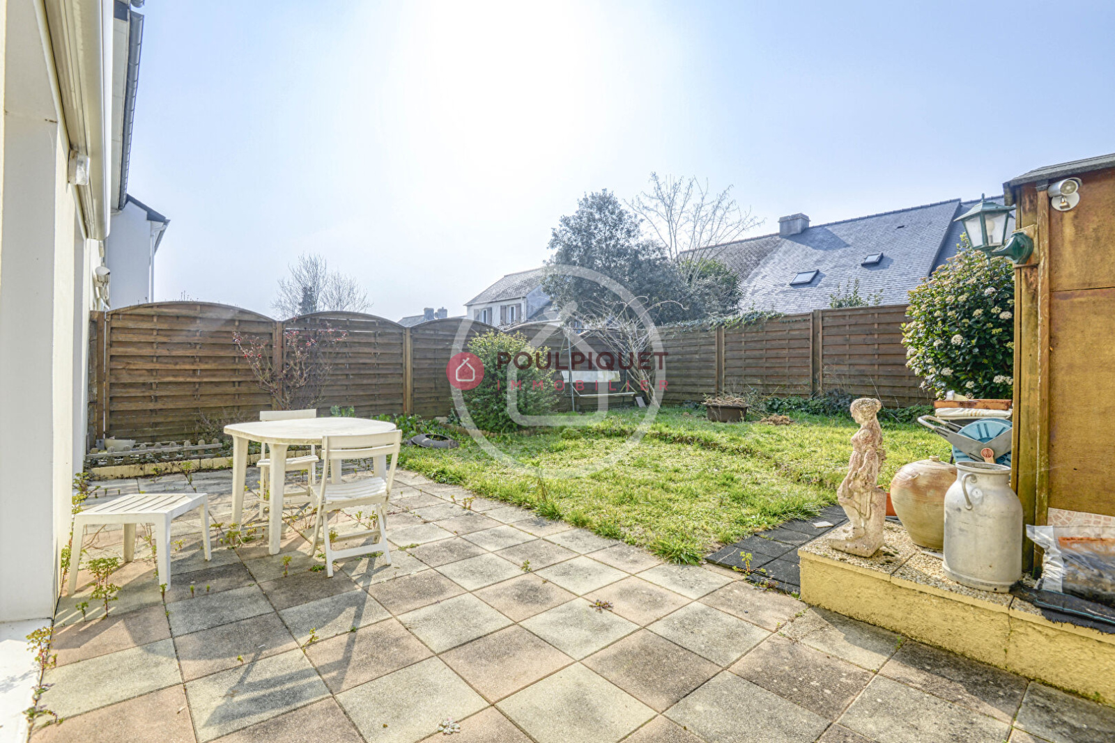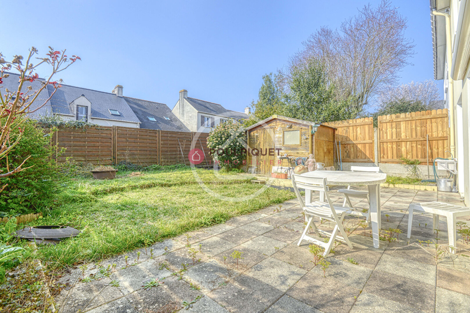 La maison est au calme, son orientation vers le jardin est Sud-Ouest, un abri de jardin en bois est présent pour le rangement des outils de jardinage. Le lotissement dispose d'un grand espace vert et clos, permettant aux enfants de jouer en sécurité en dehors du jardin de la maison.